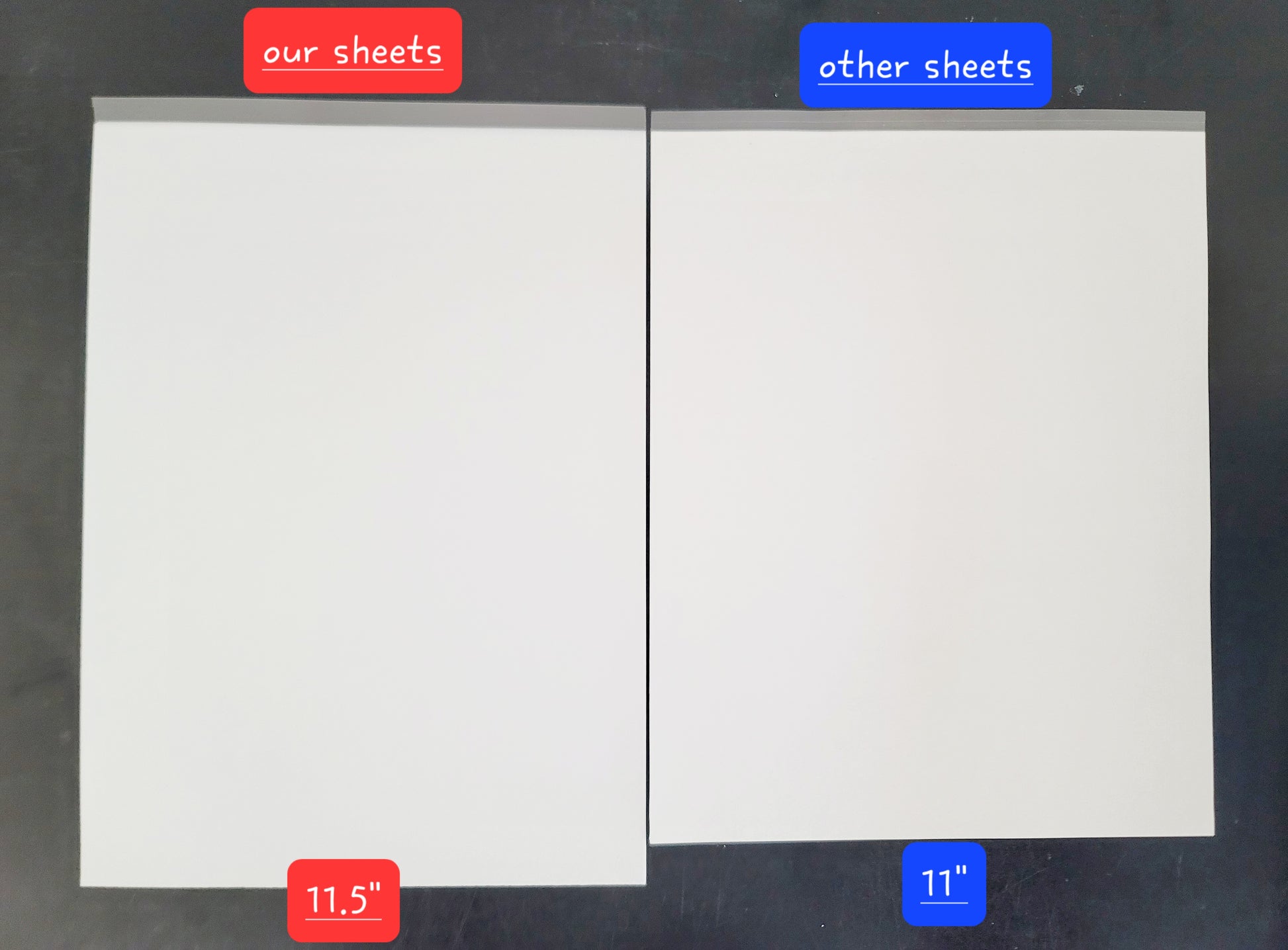 Our Frosting Sheets are 11.5" long (versus the standard 11" sheets) which allows for more printing space and alleviates printer jams.