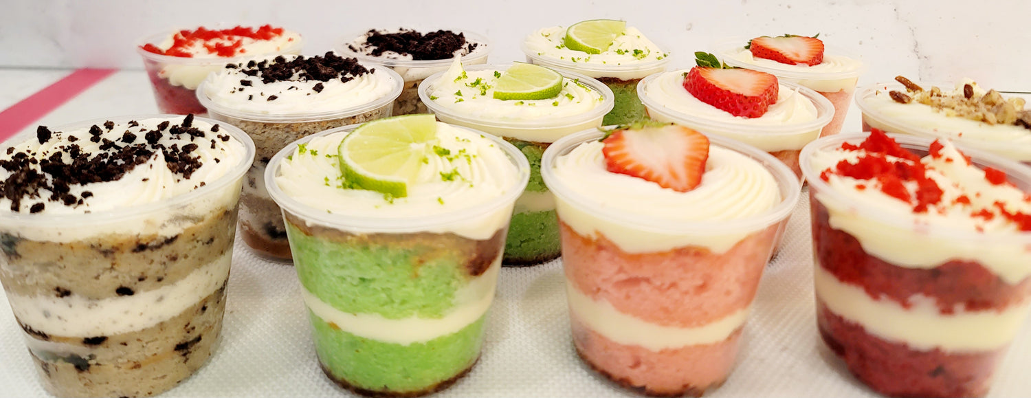 Indulge in our mouth-watering Cake Cups, with 12 5.5 ounce cups per pack - a delicious and convenient way to satisfy your sweet cravings! Each cup is packed with flavor and made fresh for you. Customize your experience with a variety of up to 3 flavors to choose from. Perfect for on-the-go indulgence, or as an addition to your next gathering. Get ready to satisfy your cravings. Don't wait, order now and taste the deliciousness for yourself!
